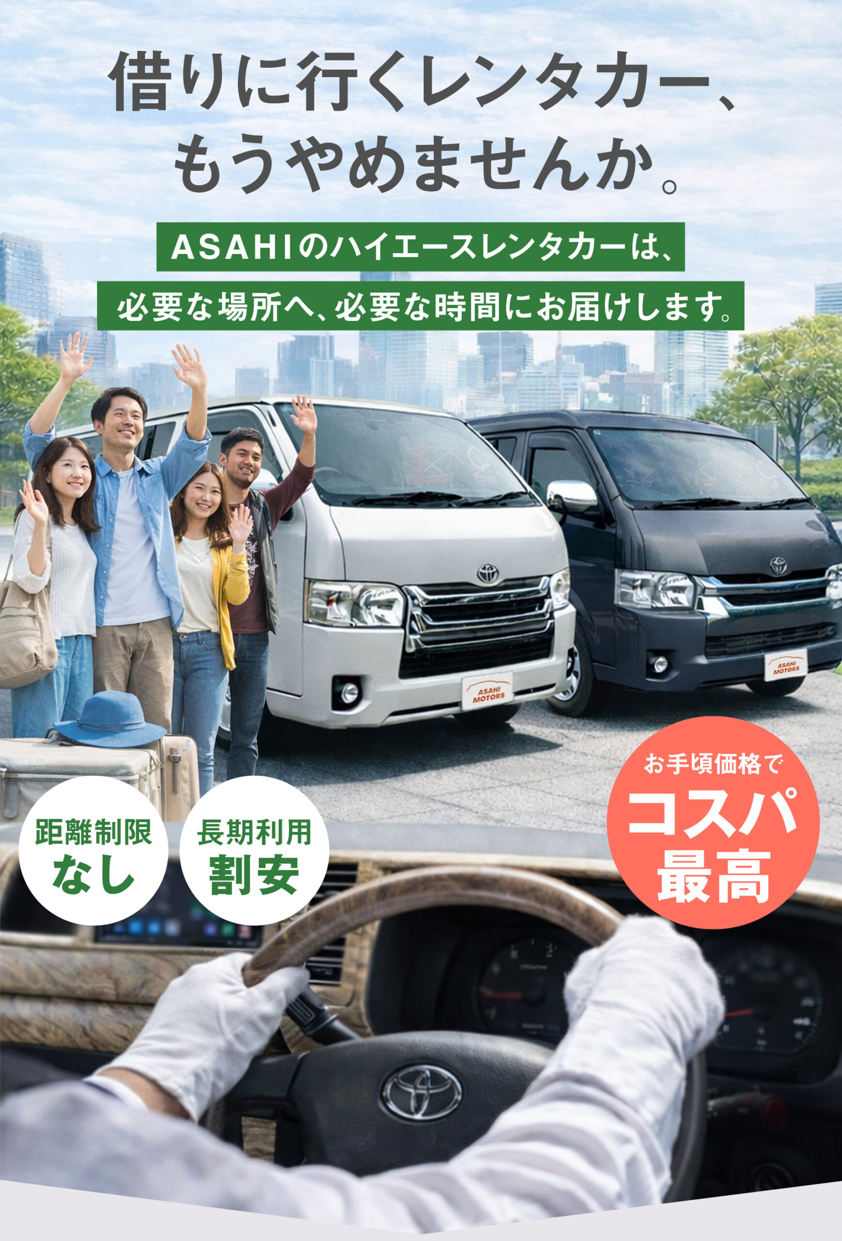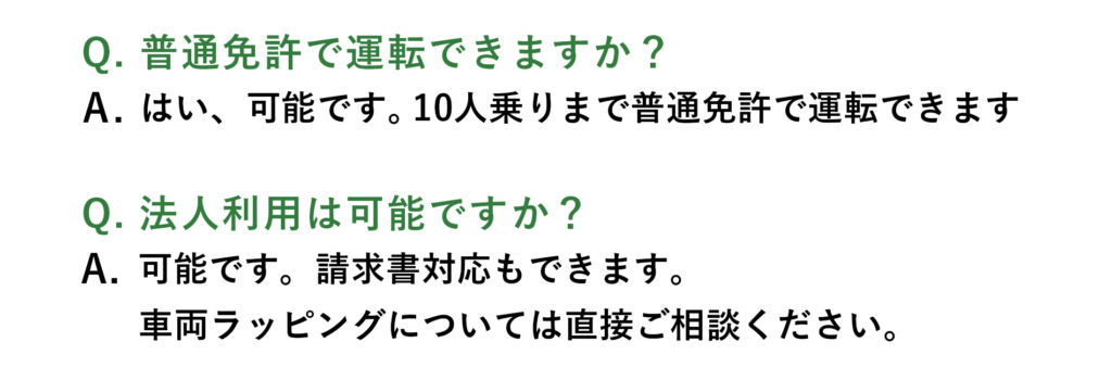 | 事業内容 | レンタカー事業、自動車販売仲介、タクシーコンサルティング事業 有料職業紹介事業 11-ユ-301210 レンタカー事業 第0722号 自動車商 第431360060421号 適格請求書発行事業者登録番号 T1030003018390 |