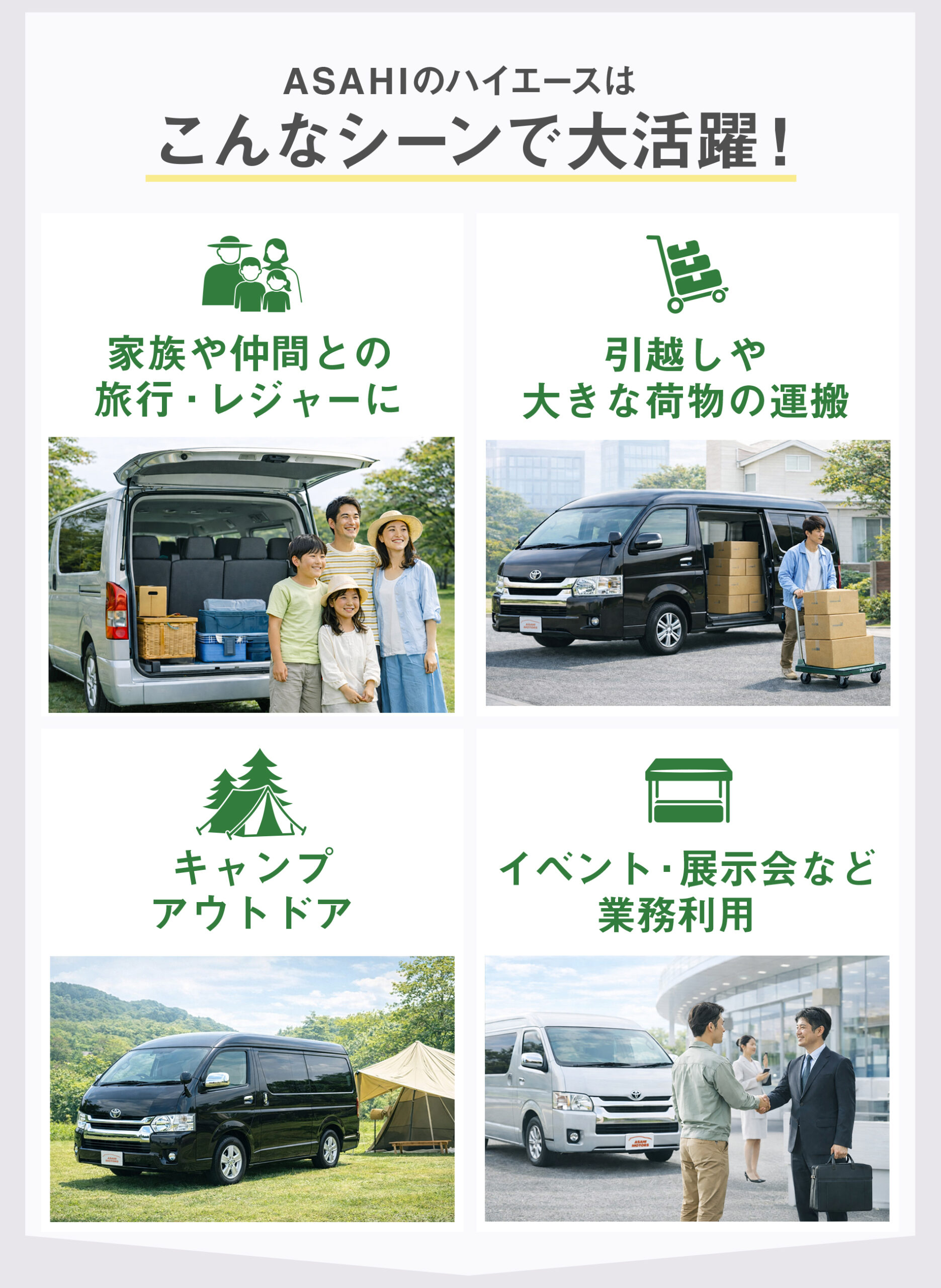 キャンプに最適 8人乗り2WD/4WD